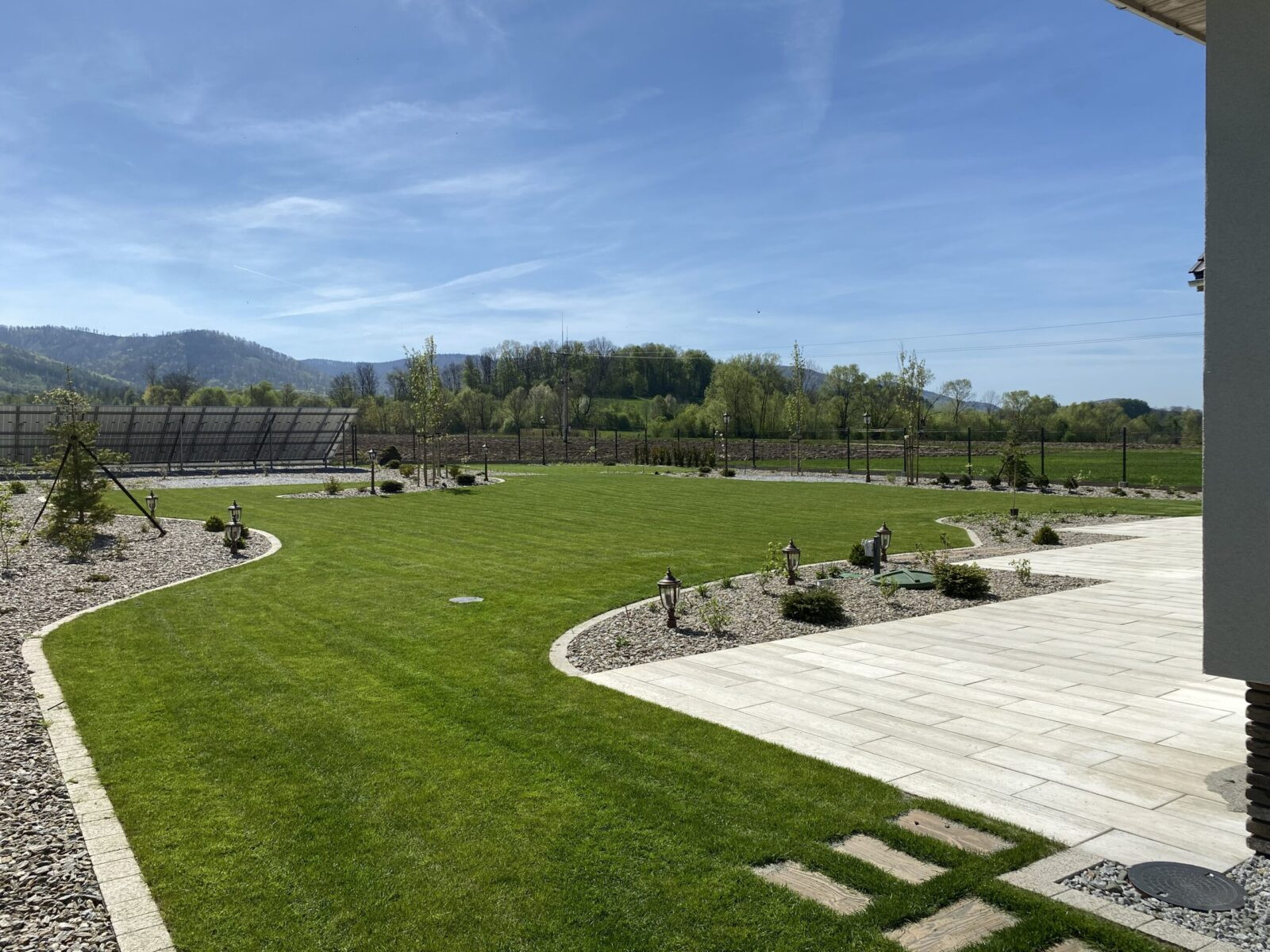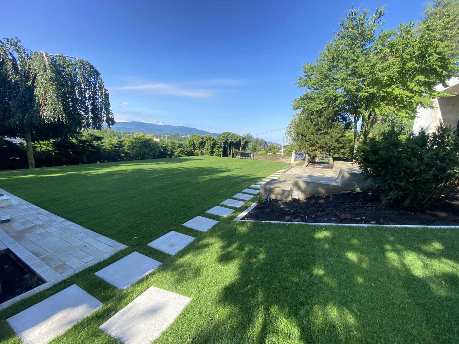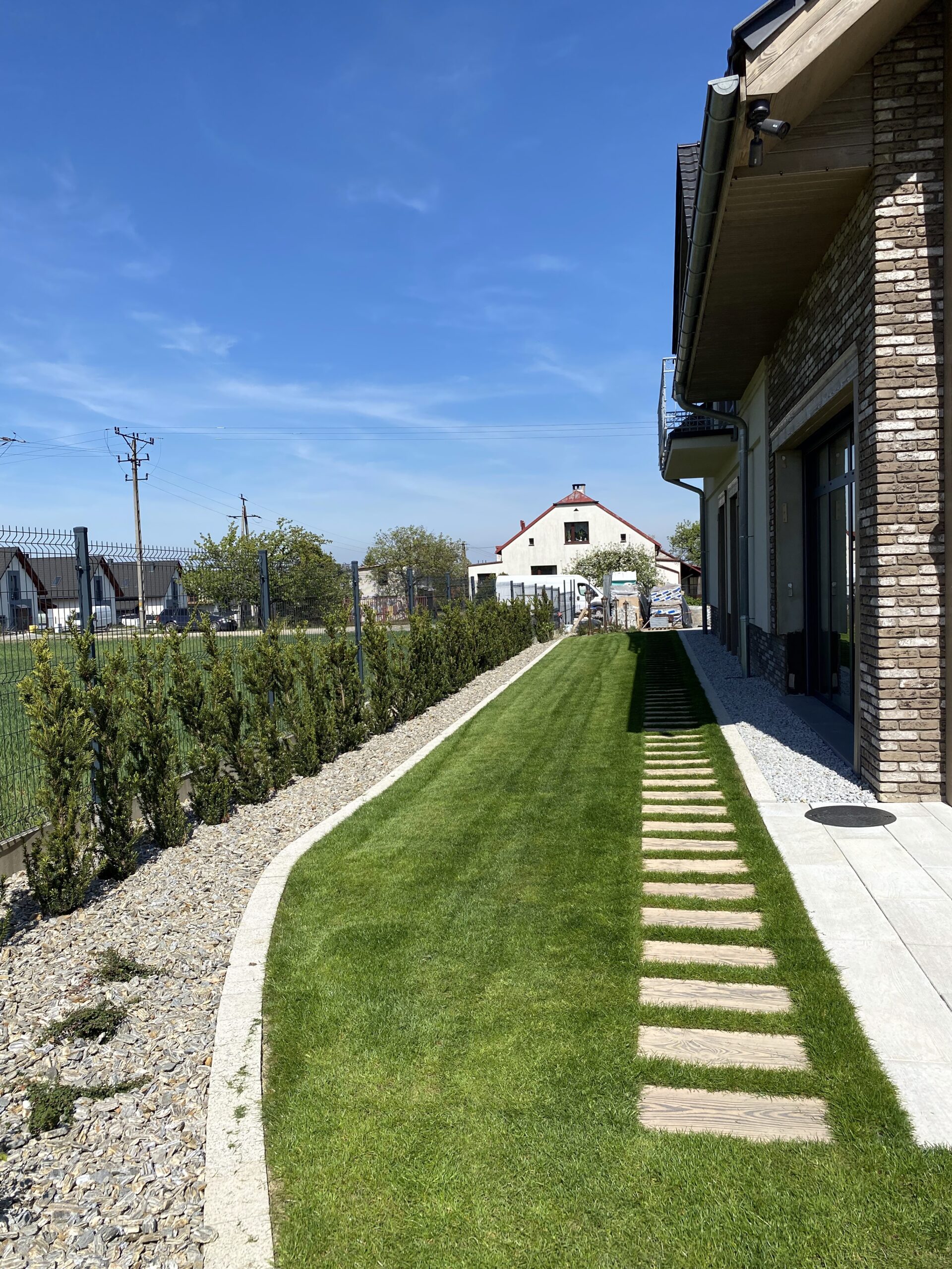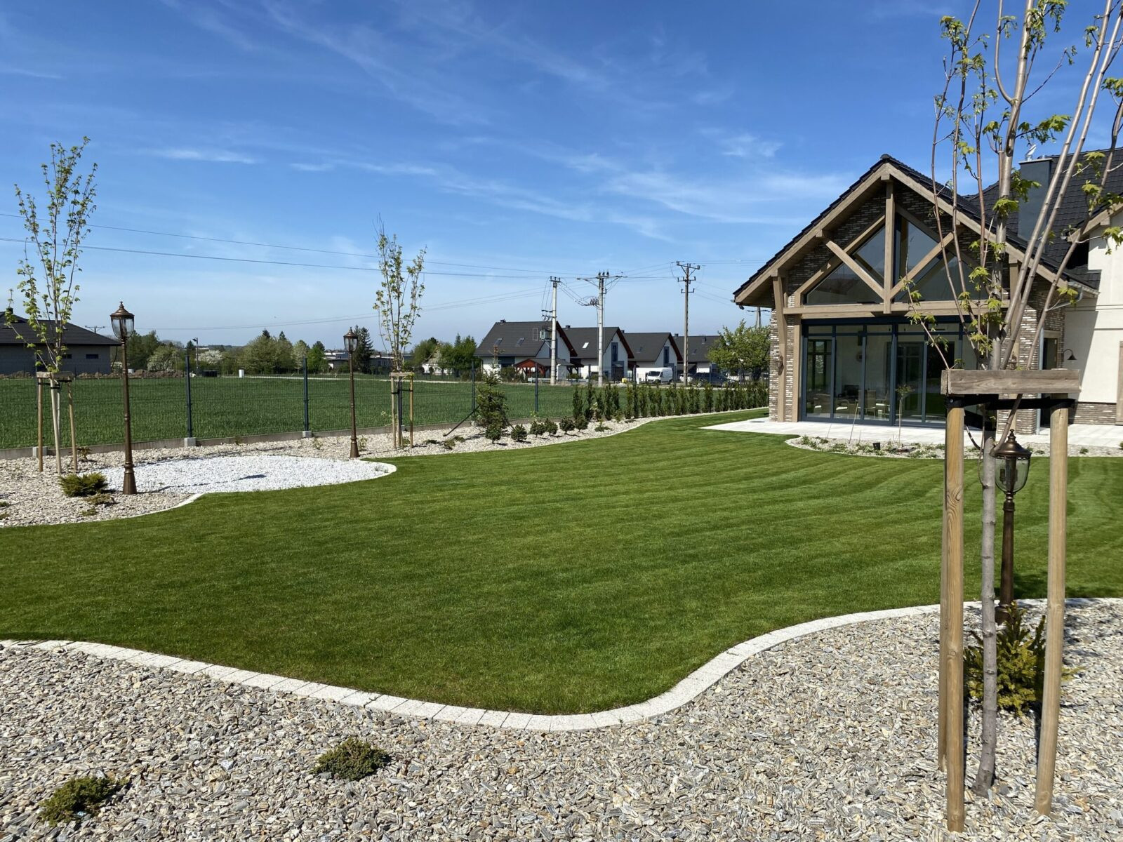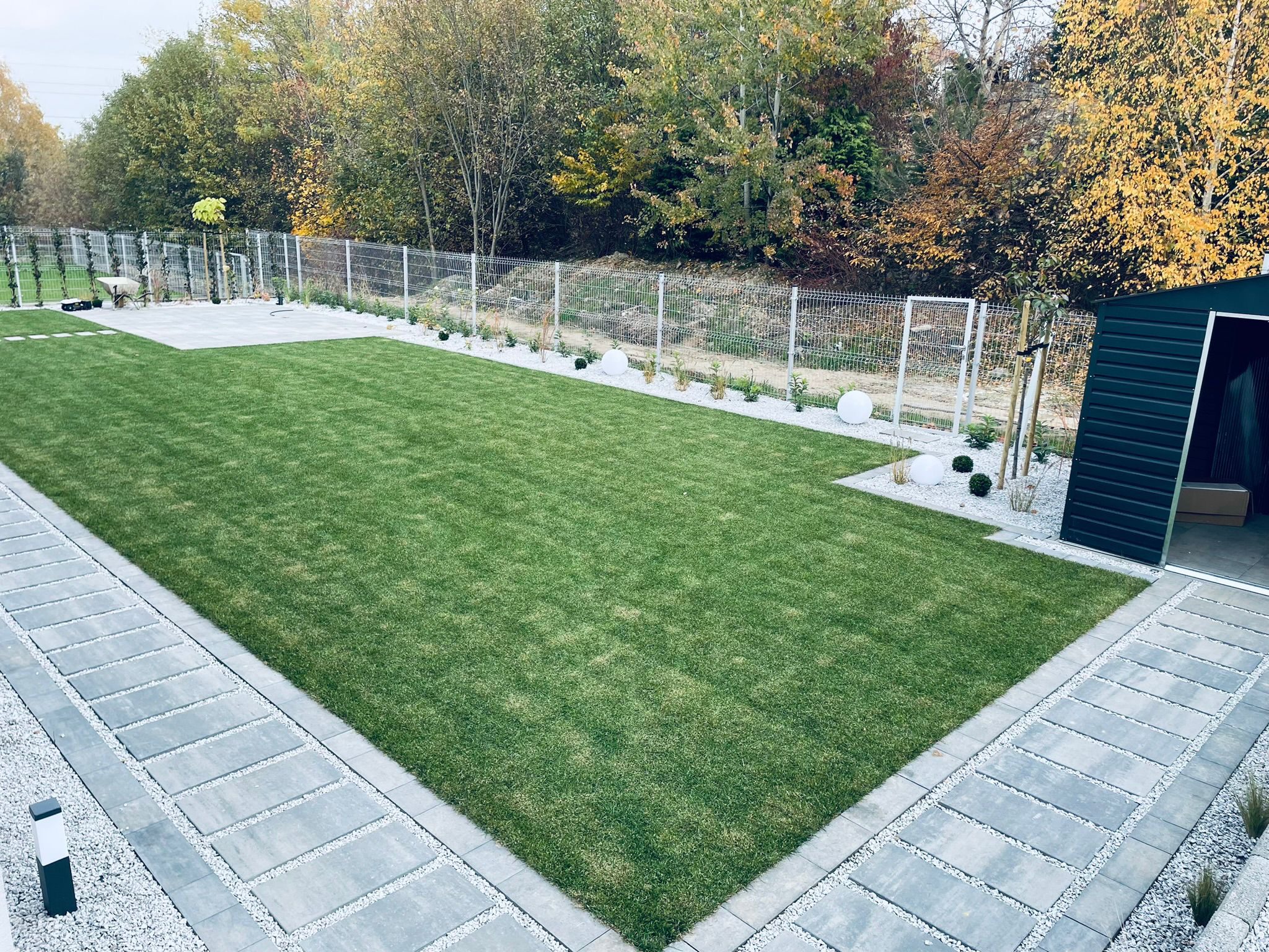 Zakładanie ogrodów traktujemy jako złożony, precyzyjny proces. W naszym zespole są osoby związane z branżą od ponad 15 lat oraz własny park maszyn, który pozwala nam realizować nawet wymagające ogrody na trudnych działkach. Zajmujemy się każdym etapem budowy ogrodu: od prac ziemnych i niwelacji terenu, przez wykonanie ścieżek ogrodowych, tarasów i elementów małej architektury, rozkładanie trawników z rolki, aż po zakładanie rabat roślinnych, montaż systemów nawadniania, oświetlenia ogrodowego, robotów koszących oraz sterowników, które pozwalają zarządzać ogrodem z poziomu telefonu.
