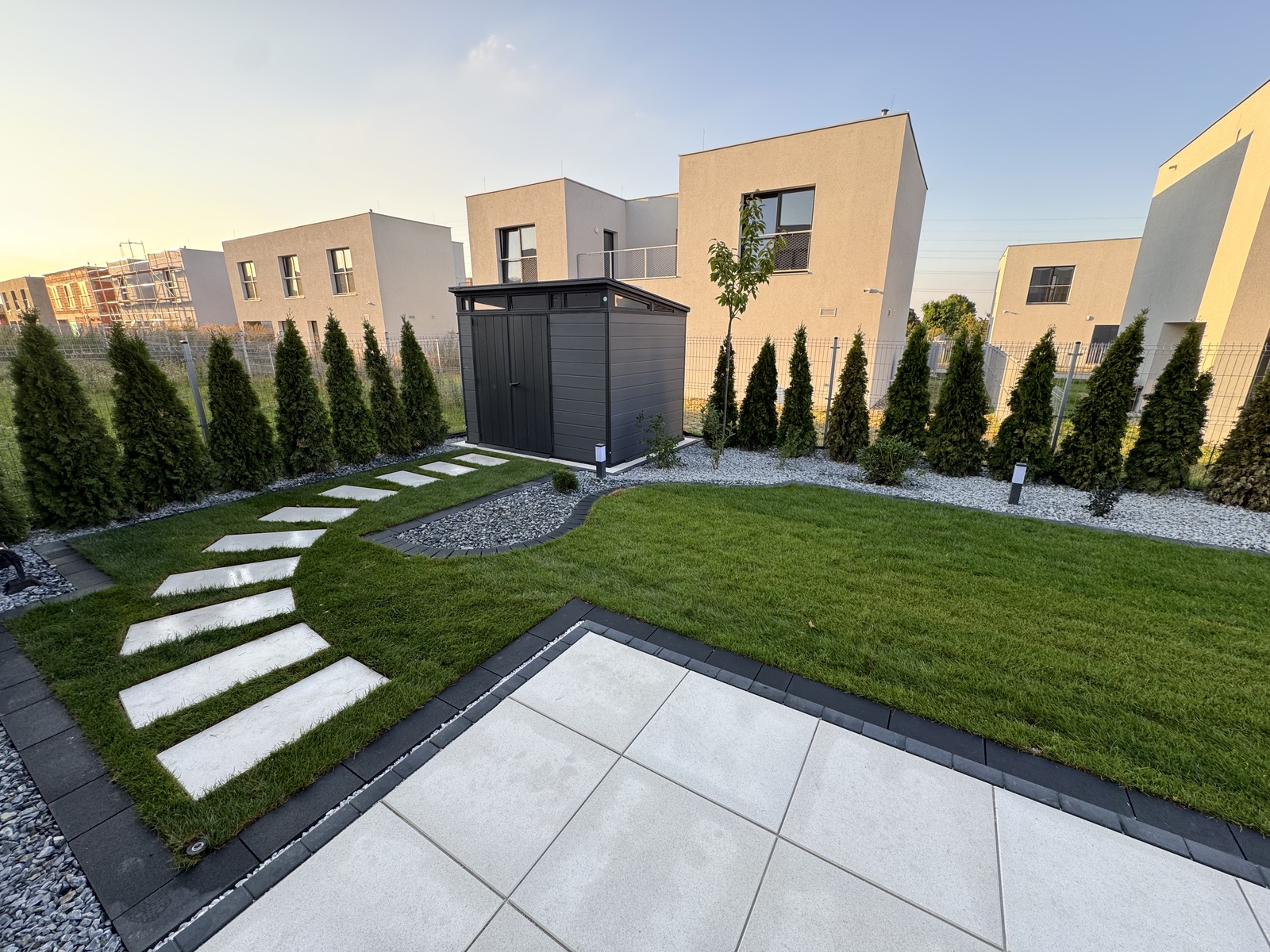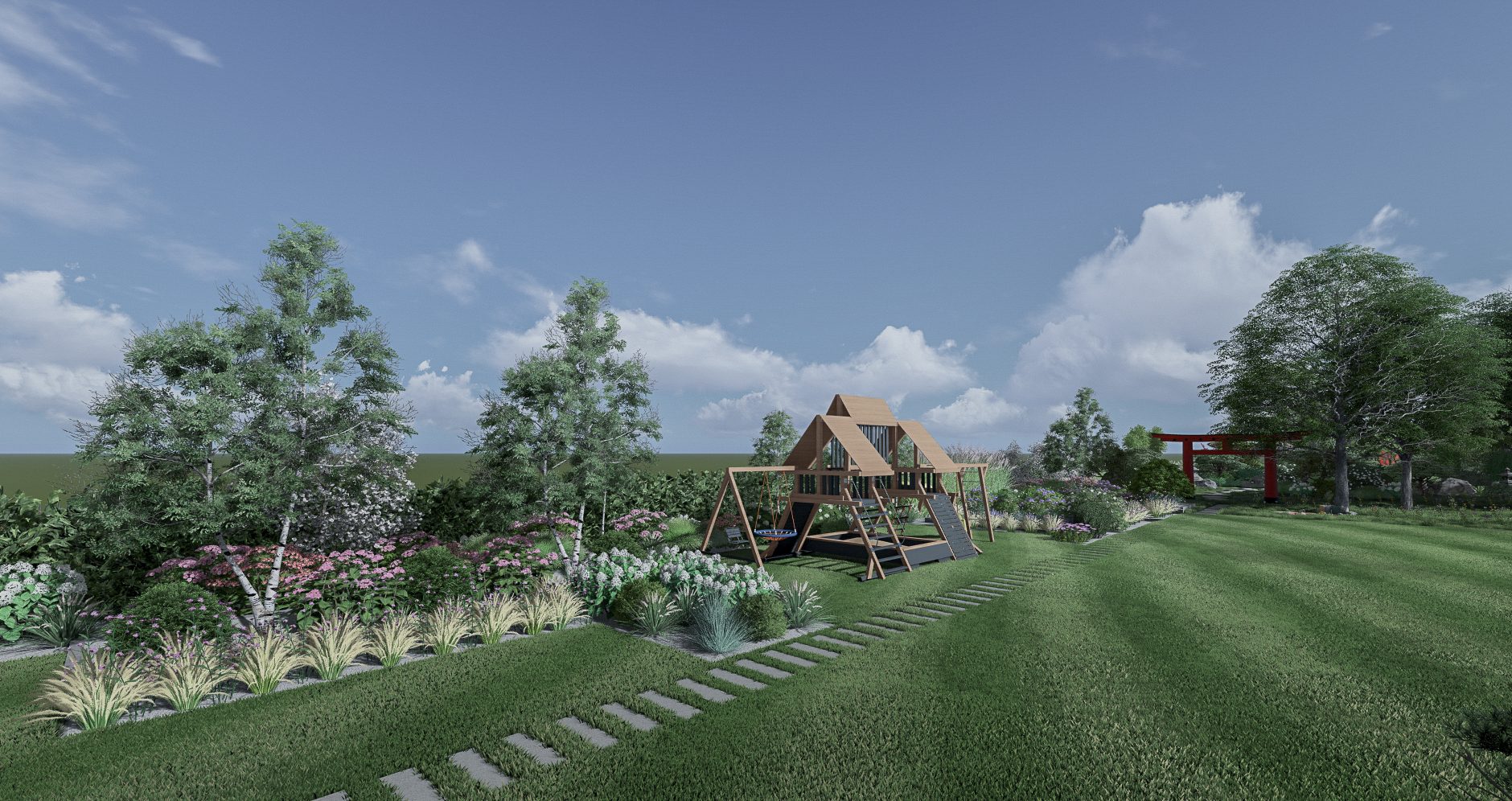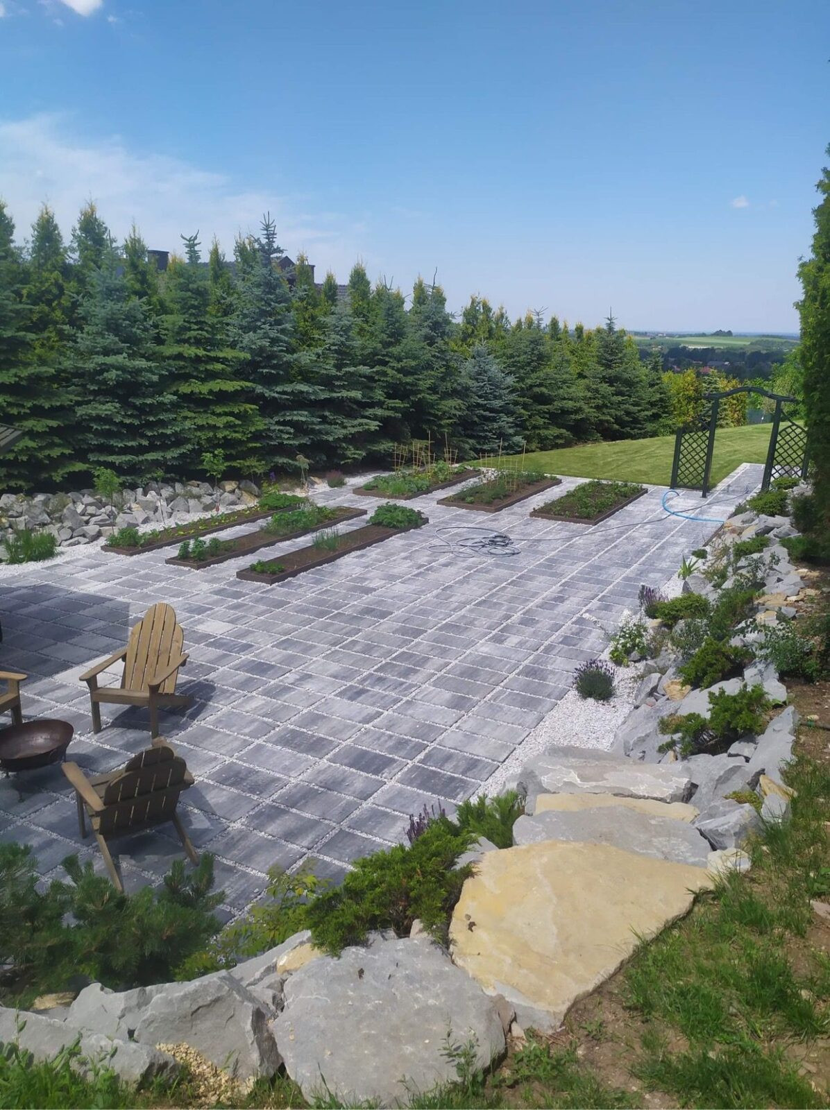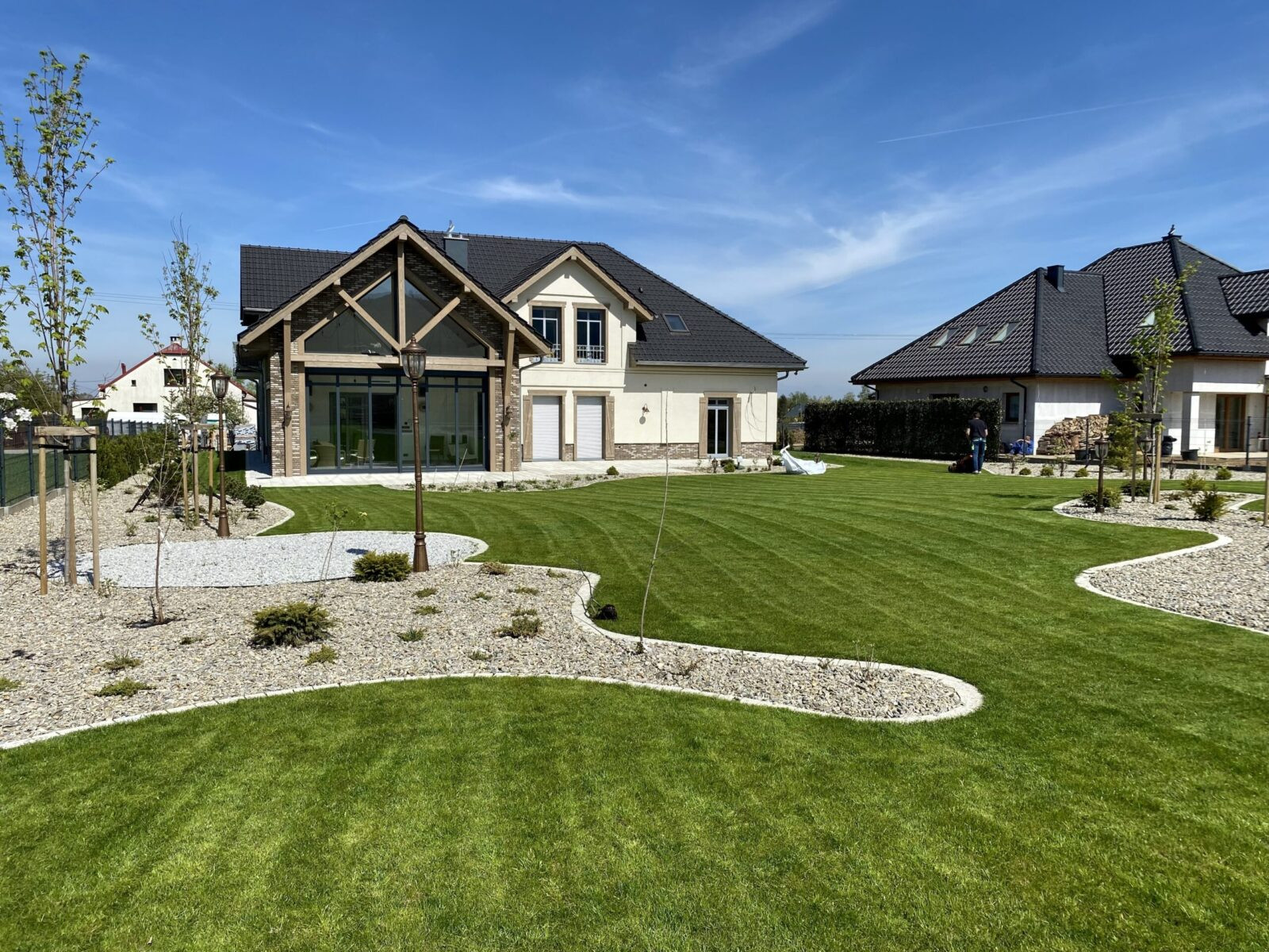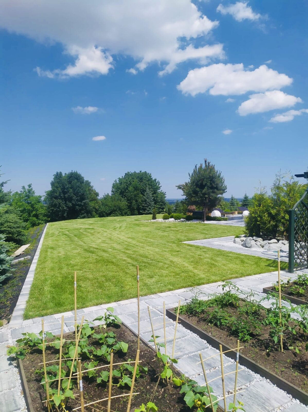 Zakładanie ogrodów traktujemy jako złożony, precyzyjny proces. W naszym zespole są osoby związane z branżą od ponad 15 lat oraz własny park maszyn, który pozwala nam realizować nawet wymagające ogrody na trudnych działkach. Zajmujemy się każdym etapem budowy ogrodu: od prac ziemnych i niwelacji terenu, przez wykonanie ścieżek ogrodowych, tarasów i elementów małej architektury, rozkładanie trawników z rolki, aż po zakładanie rabat roślinnych, montaż systemów nawadniania, oświetlenia ogrodowego, robotów koszących oraz sterowników, które pozwalają zarządzać ogrodem z poziomu telefonu.