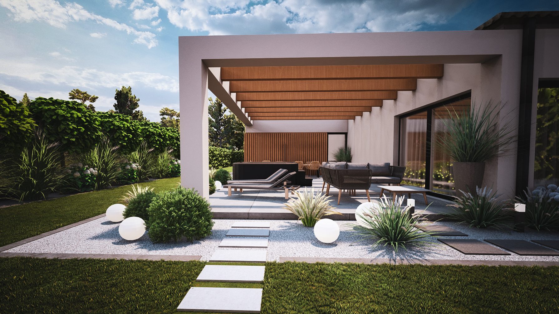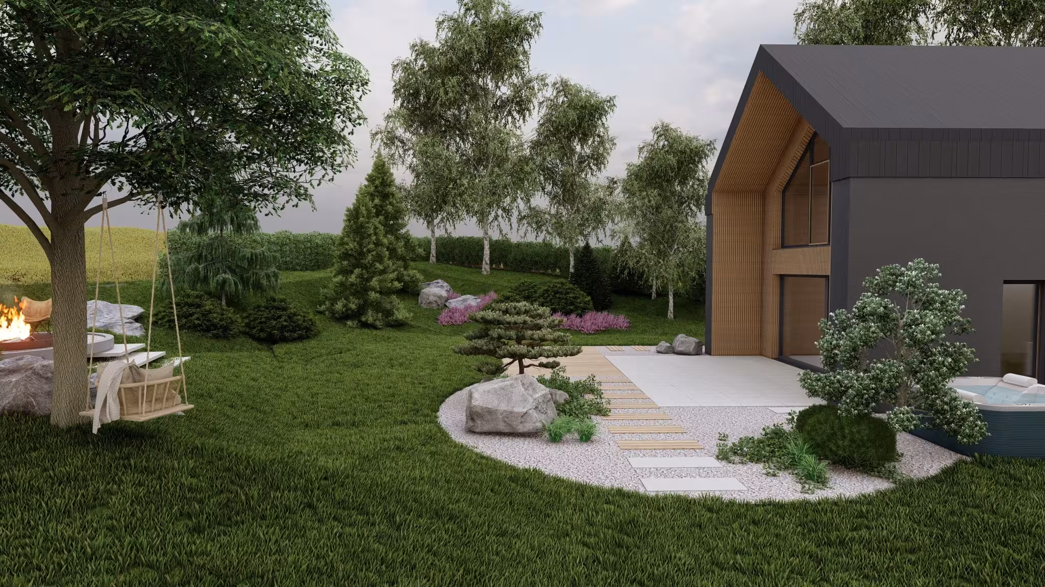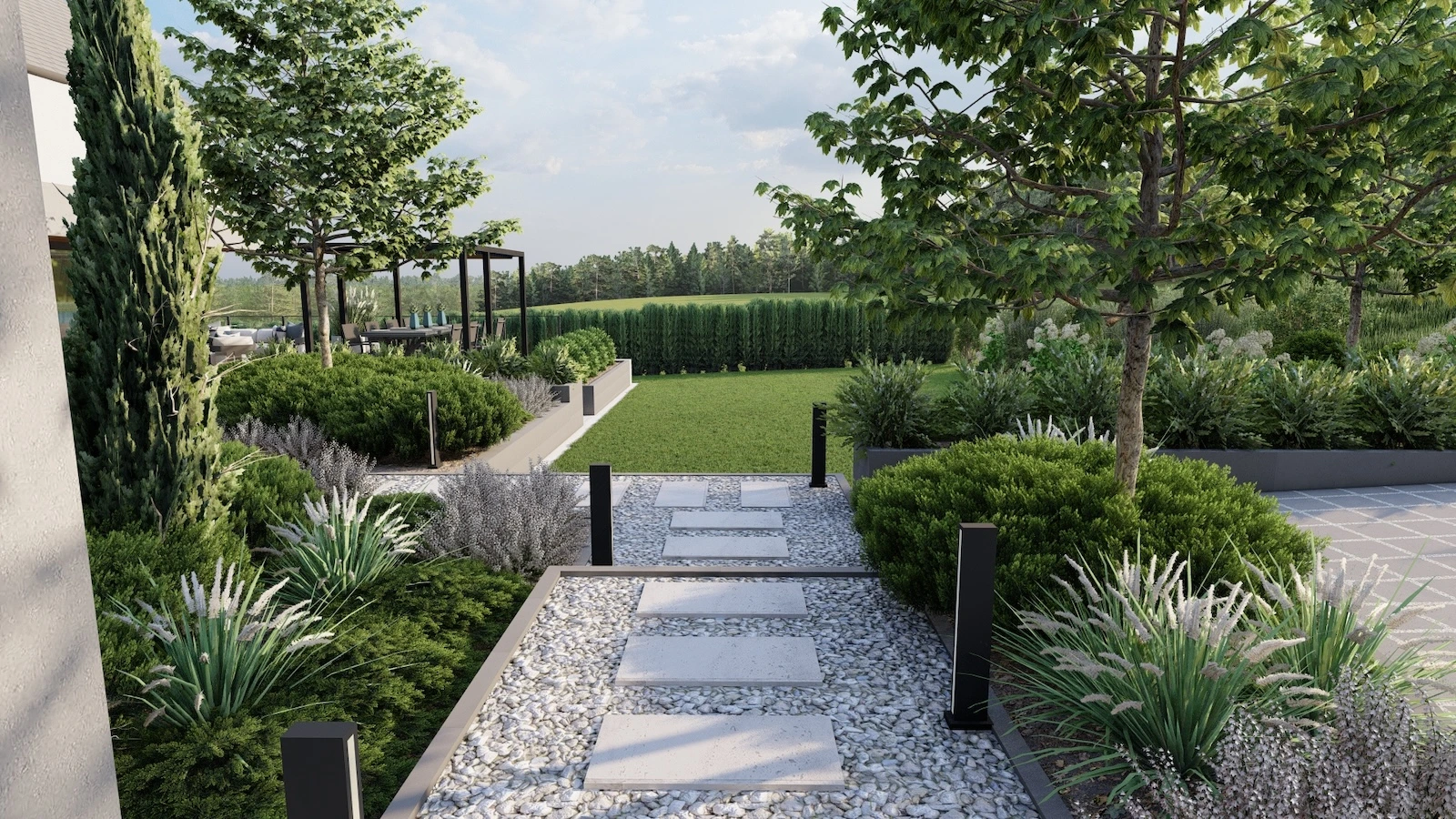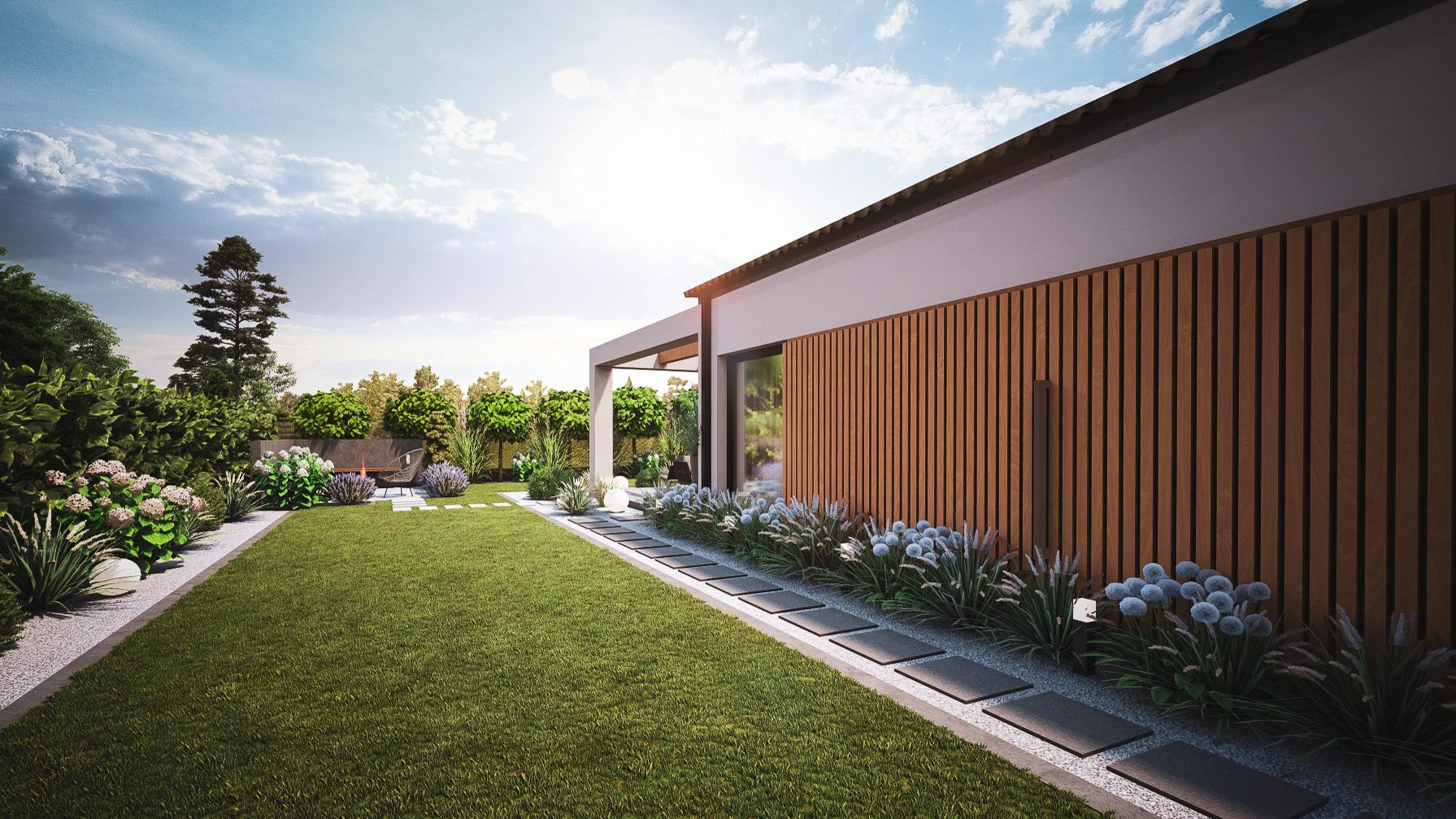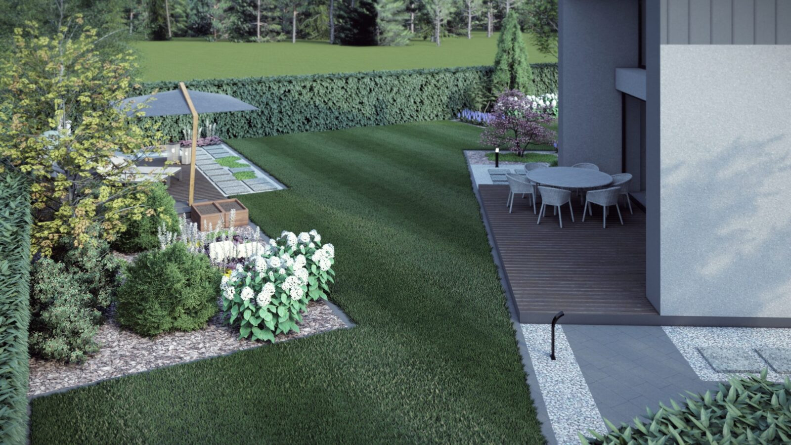 Jesteśmy specjalistami w tworzeniu wyjątkowych, nowoczesnych ogrodów klasy premium przy domach jednorodzinnych. Projektujemy i realizujemy ogrody, które łączą estetykę, funkcjonalność i indywidualne potrzeby właścicieli.