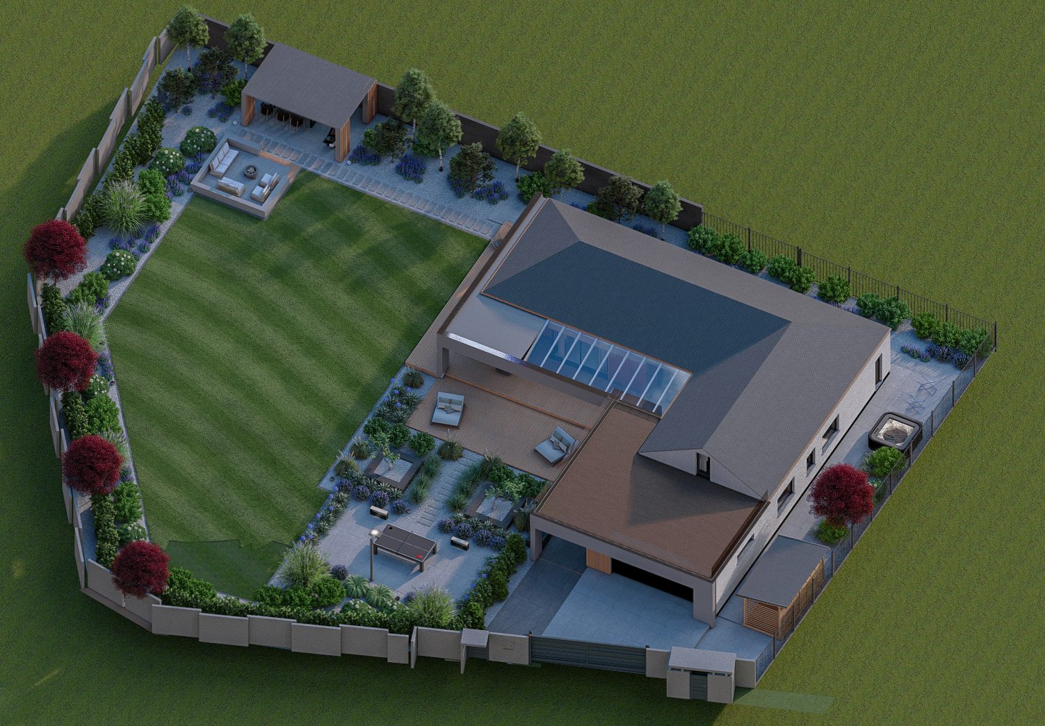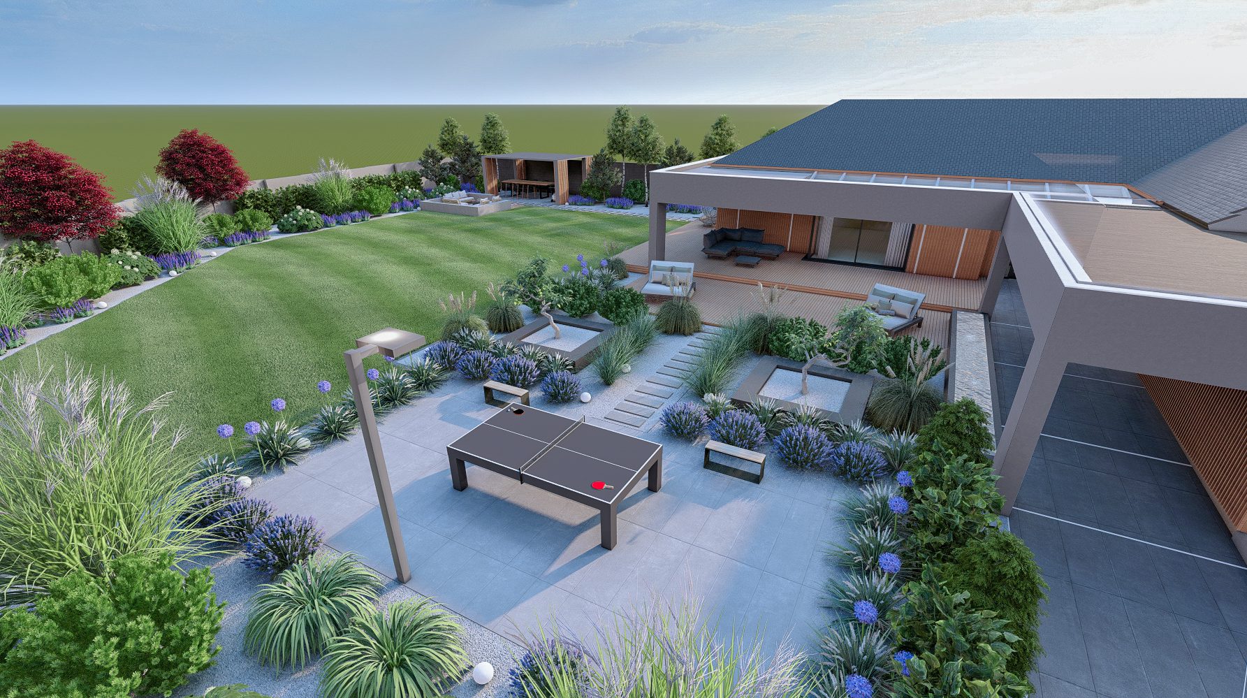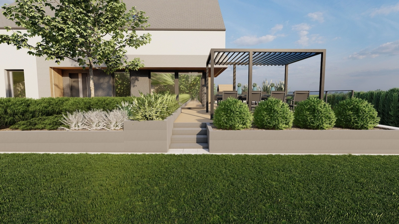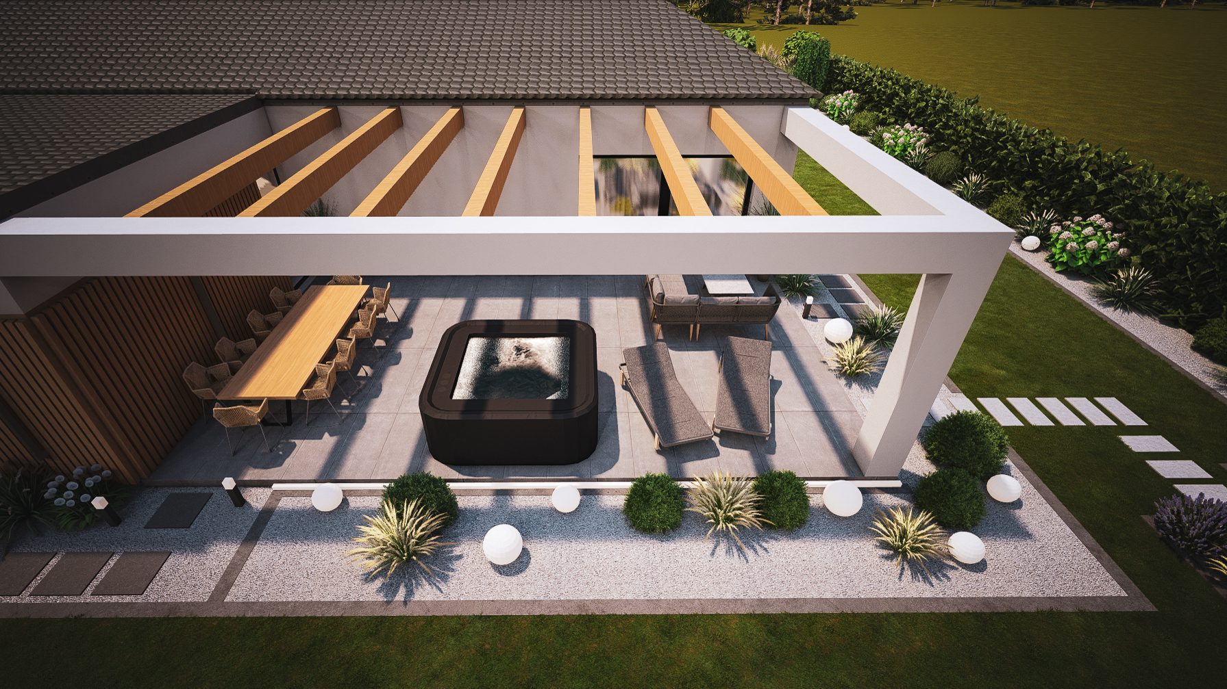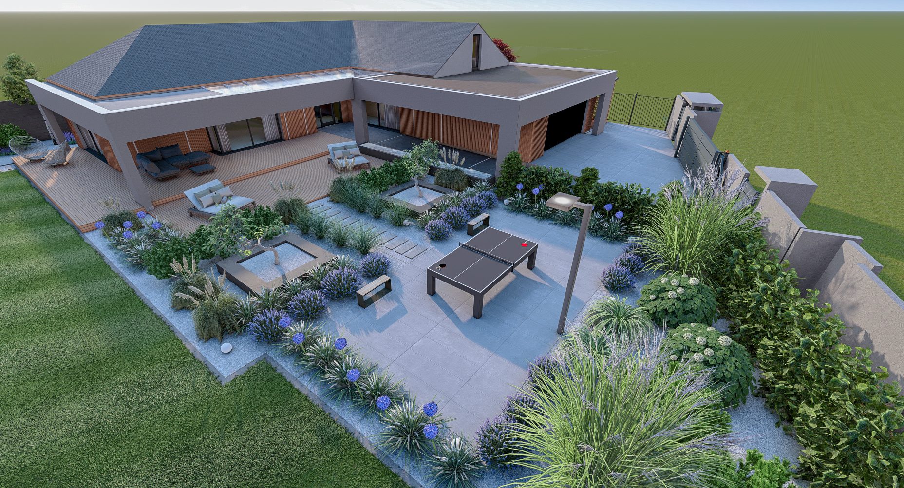 Jesteśmy specjalistami w tworzeniu wyjątkowych, nowoczesnych ogrodów klasy premium przy domach jednorodzinnych. Projektujemy i realizujemy ogrody, które łączą estetykę, funkcjonalność i indywidualne potrzeby właścicieli.