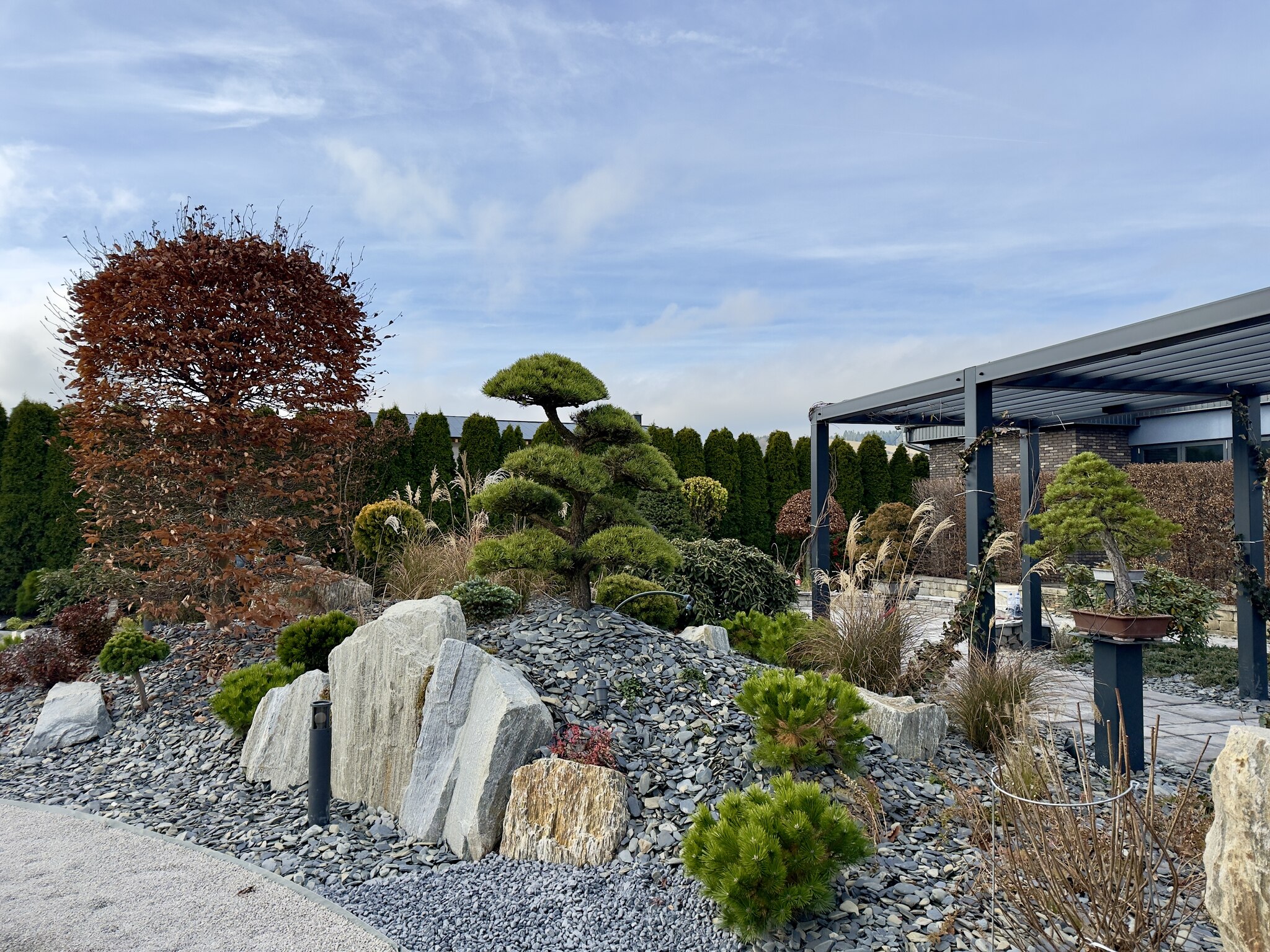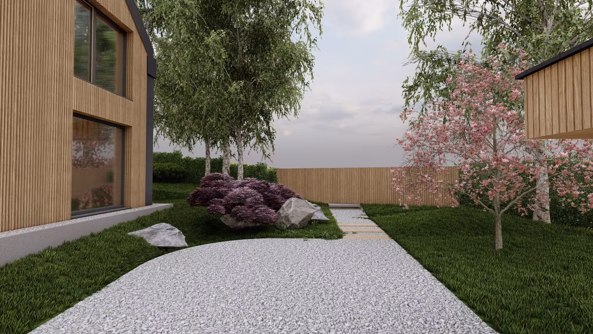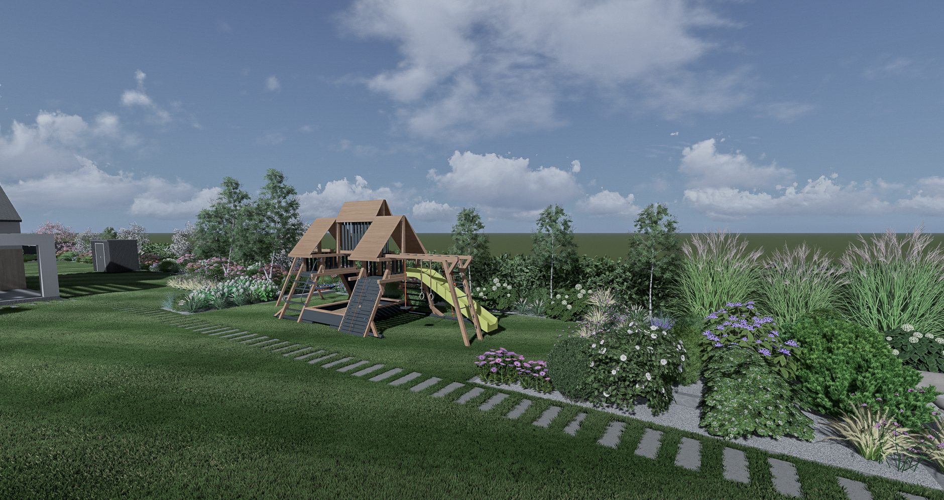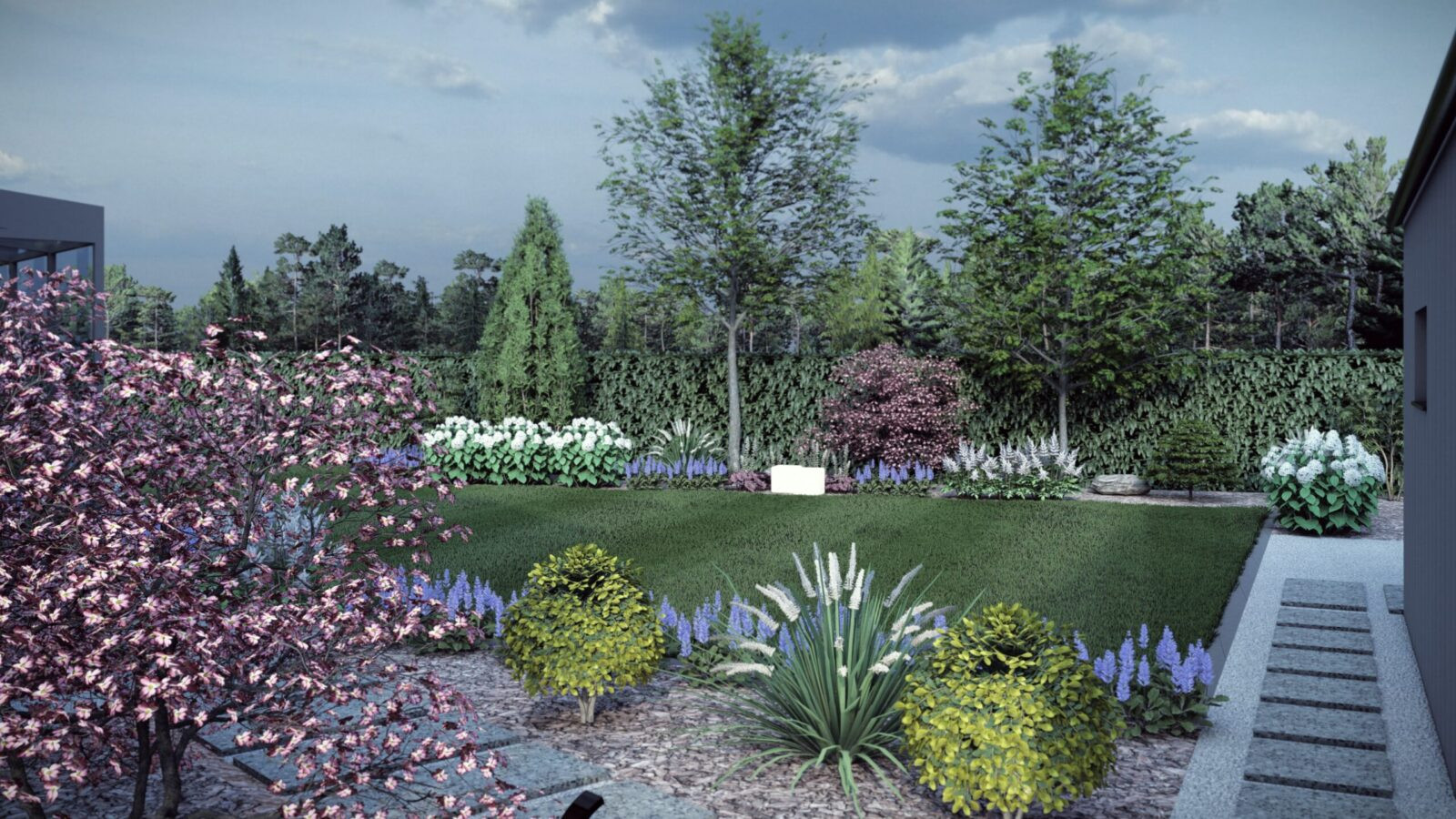 Tak. Projekt ogrodu obejmuje dobór roślin oraz materiałów, dostosowanych do warunków działki, architektury domu i założeń estetycznych. Rozwiązania opierają się na doświadczeniu projektowym oraz praktyce realizacyjnej.