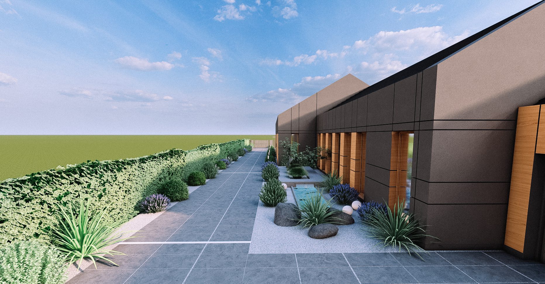 Projektujemy ogrody, które wyglądają jak naturalne przedłużenie domu. Zaczynamy od architektury, proporcji działki i tego, jak chcesz korzystać z przestrzeni. Następnie budujemy kompozycję: układ stref, osie widokowe, rytm zieleni, materiały i detale, które robią czysty, nowoczesny efekt. Dostajesz spójną koncepcję, która porządkuje decyzje i nadaje ogrodowi przemyślany kierunek.