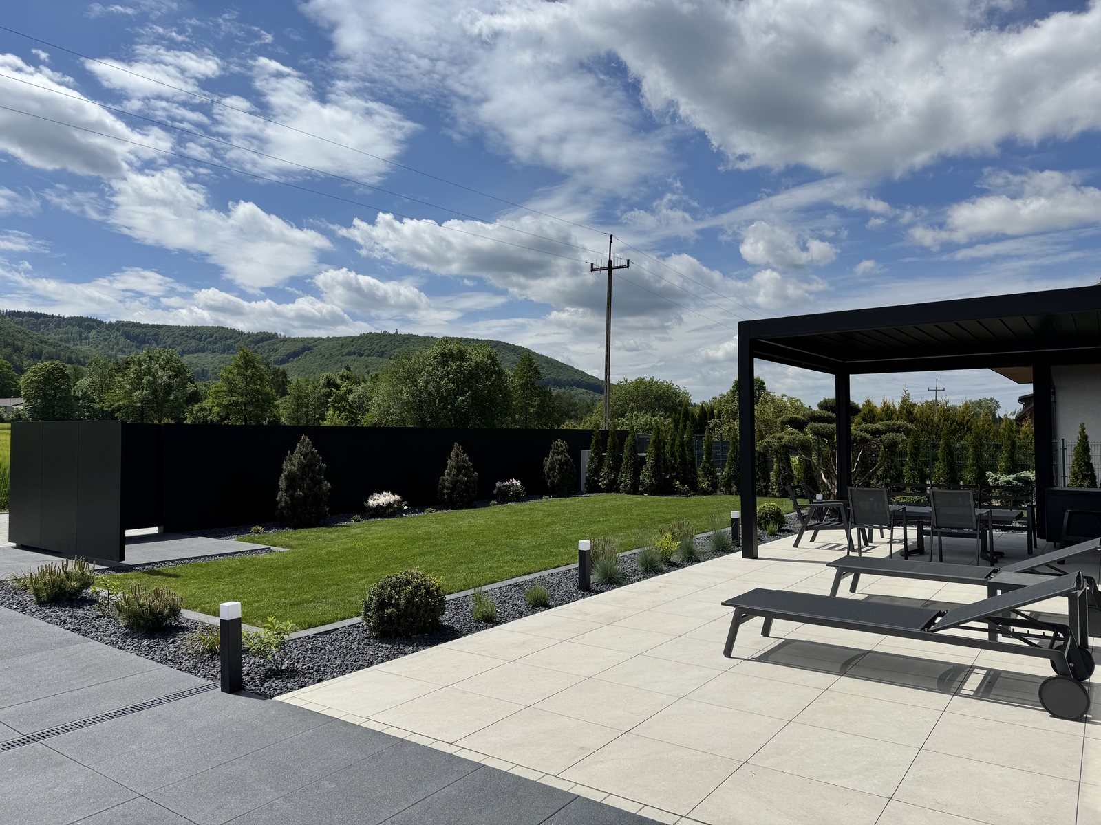 Wykonujemy nawierzchnie utwardzone, które porządkują ogród i domykają architekturę posesji. Realizujemy tarasy z deski kompozytowej, nawierzchnie z płyt wielkoformatowych oraz z kostki brukowej i innych materiałów — zawsze z naciskiem na trwałość, prawidłowe poziomy i spójny efekt wizualny. Montujemy również pergole, tarasole i zadaszenia, które tworzą komfortową strefę wypoczynku niezależnie od pogody.